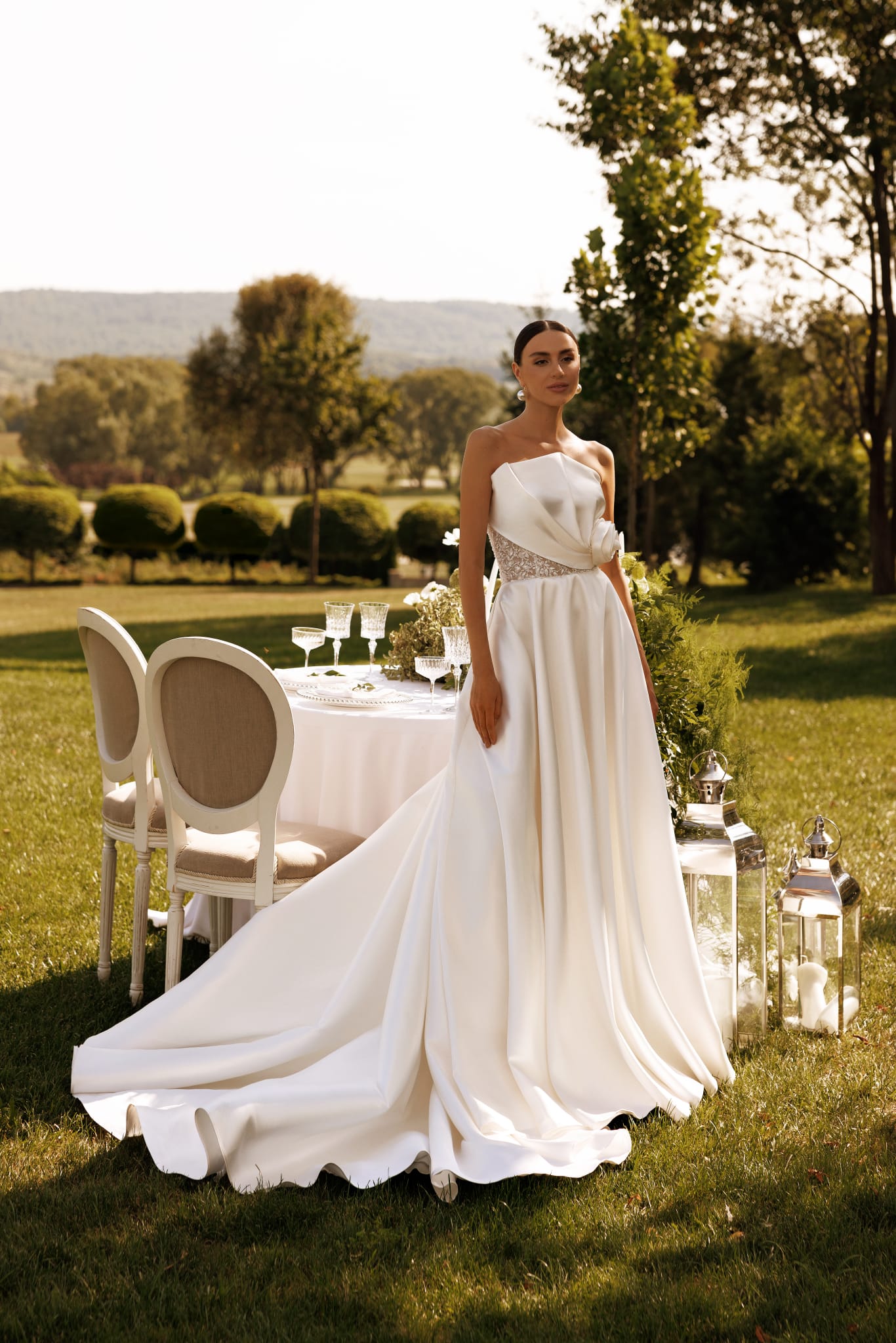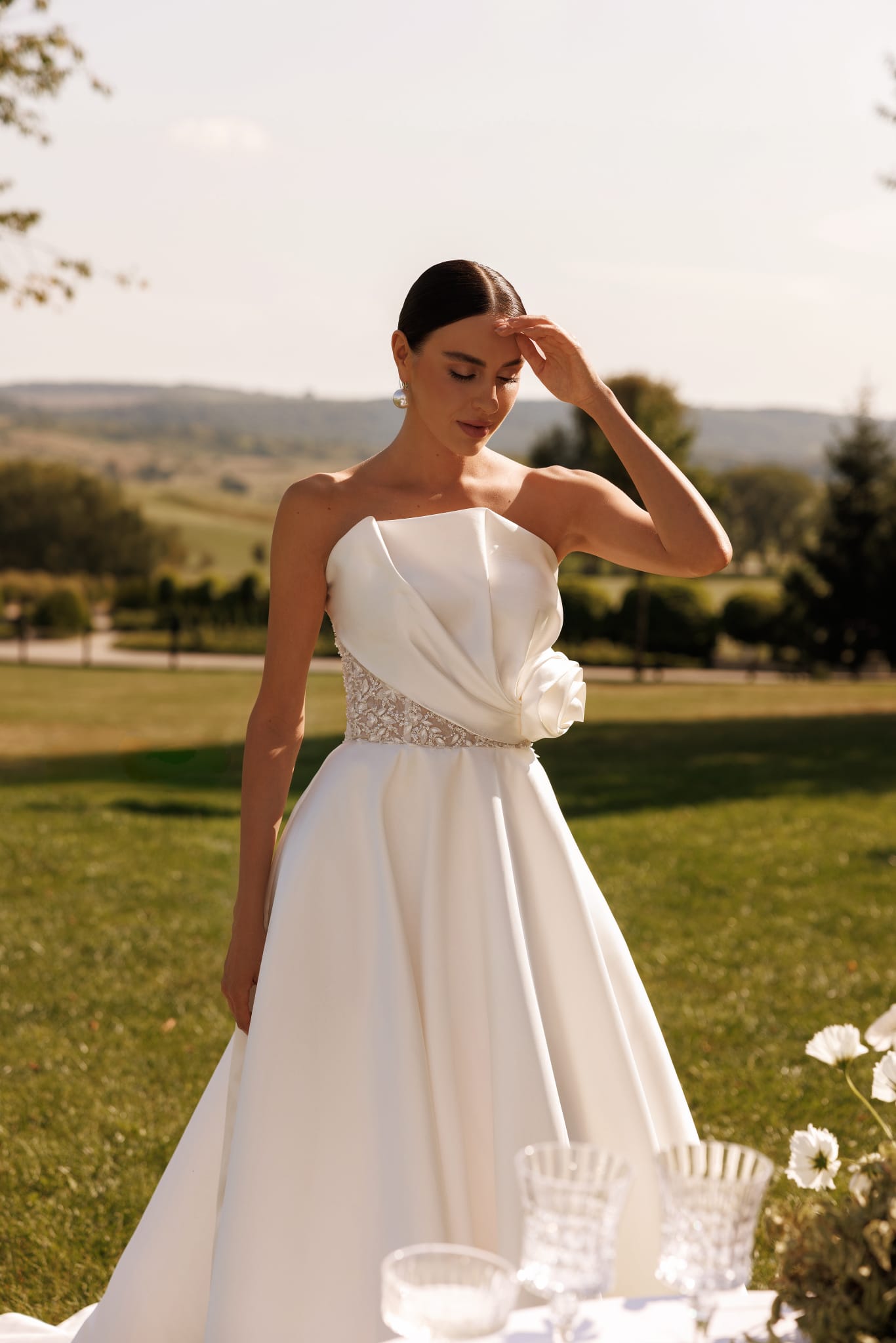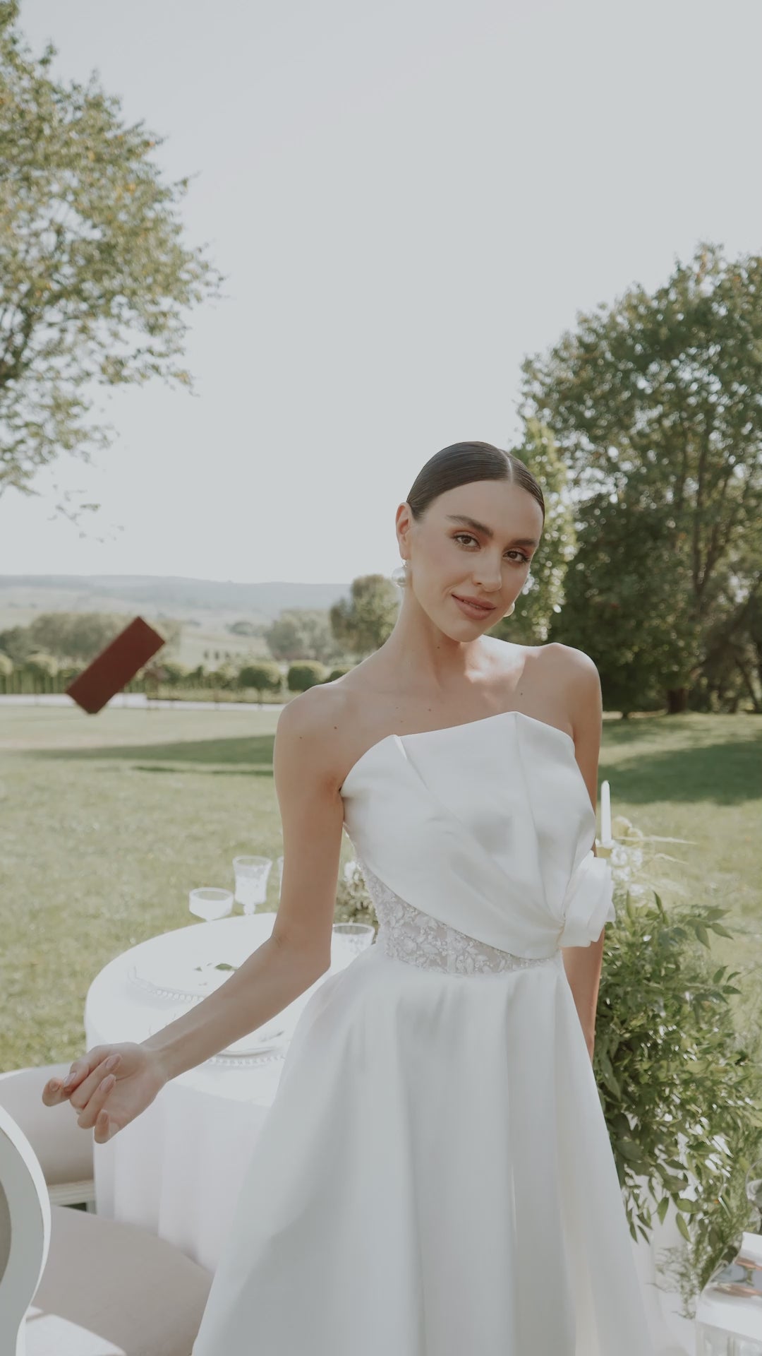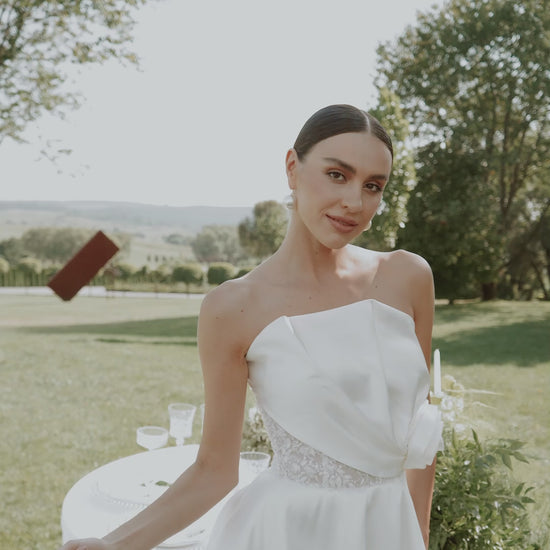 Amélie es una oda a la elegancia moderna. Su diseño limpio y estructurado, elaborado en un exquisito satén, combina la sutileza del minimalismo con un toque romántico irresistible.