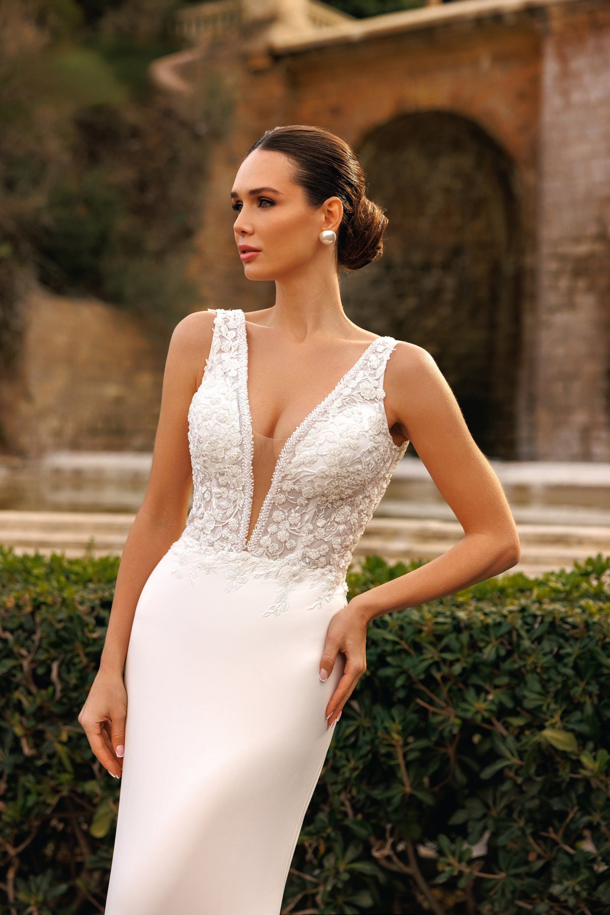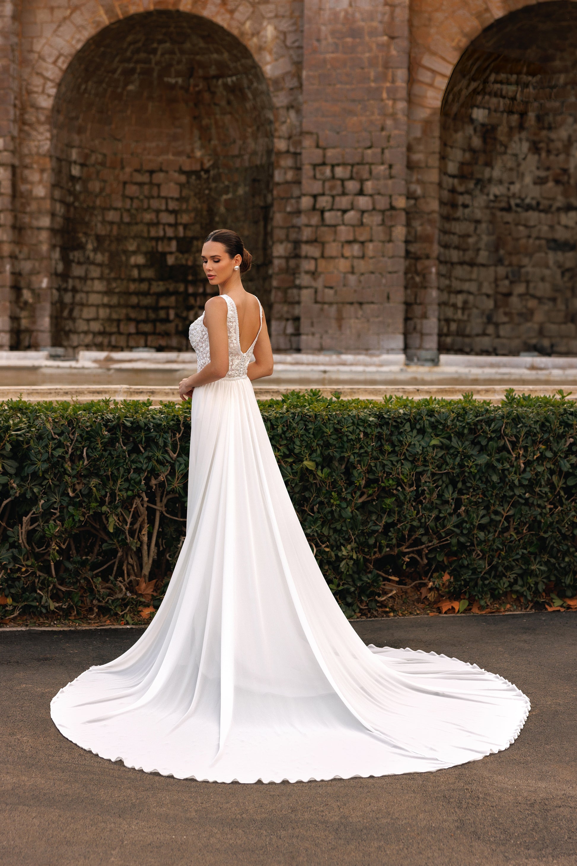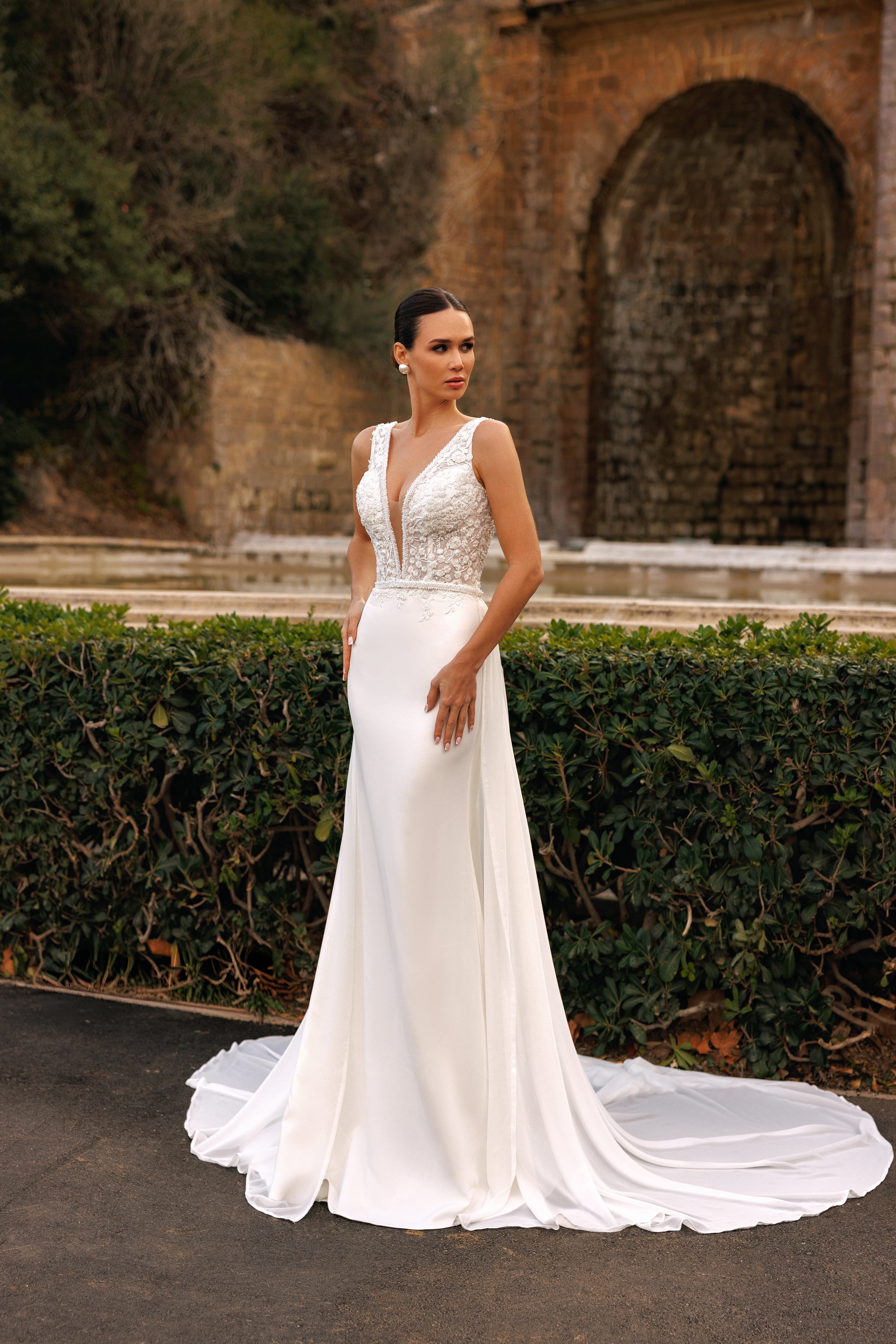 Un diseño versátil, femenino y atemporal, perfecto para una novia segura, moderna y con gusto por los detalles.